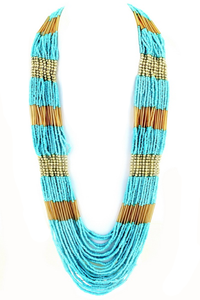 This sky blue seed bead necklace is the perfect piece to pair with your favorite flowy necklace or maxi dress. It measures approximately 32" long with a 3" extension.