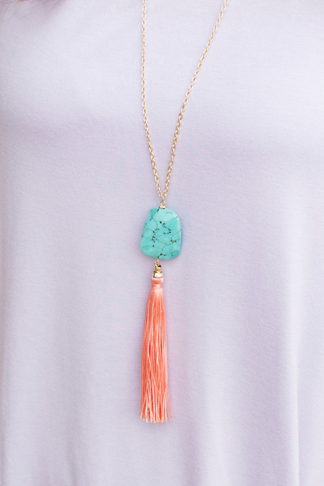 This gorgeous soft tassel pendant necklace has the look of the designer necklaces at a fraction of the price. This necklace measures approximately 20" from top of the necklace to the bottom of the tassel with a 3" extender. The pendant is approximately 1.25"