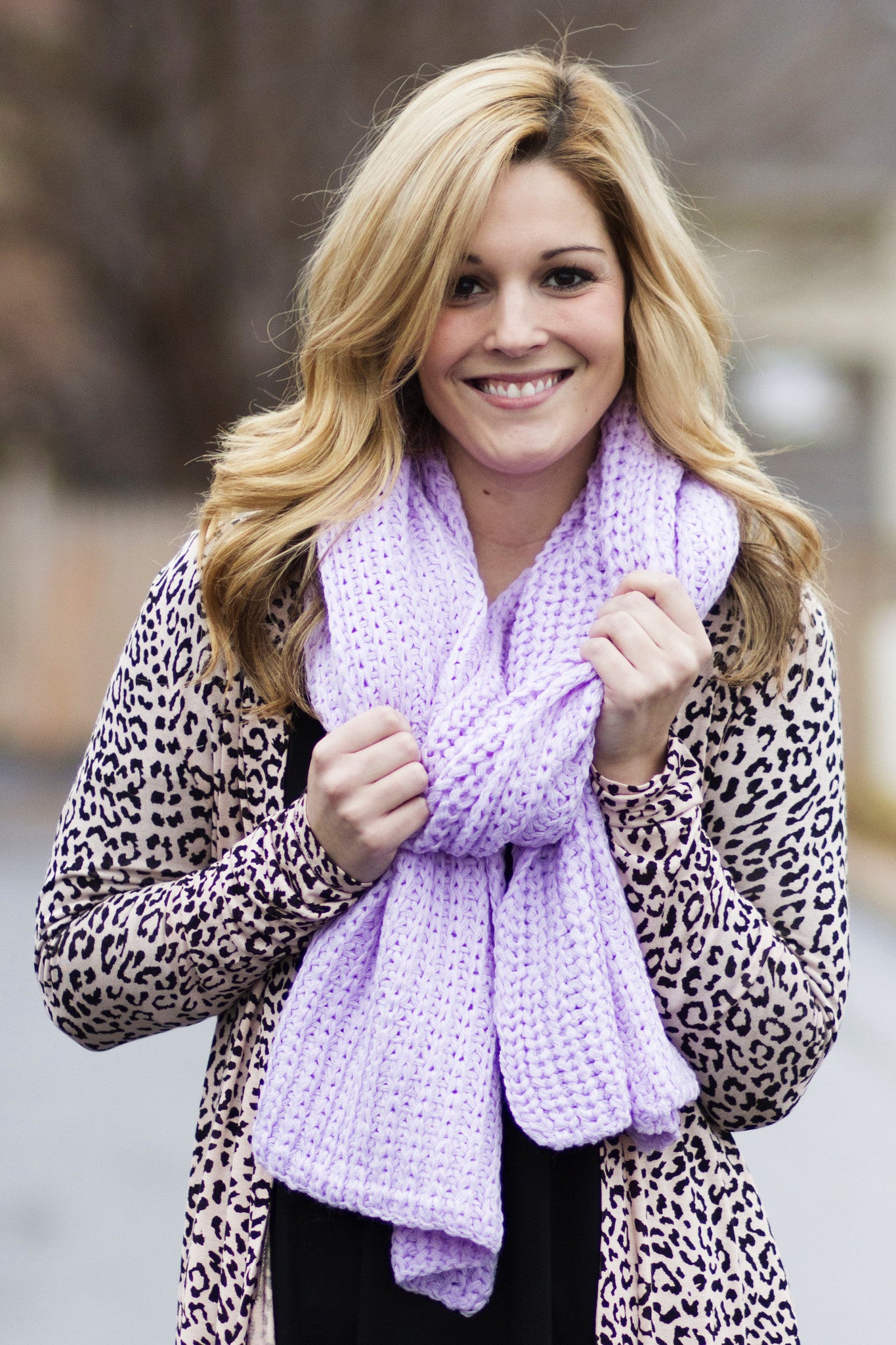 Add some pretty colors to your cozy winter wardrobe with this big lavender blanket knit scarf. This scarf is not only colorful, it will keep you warm during the chilly winter months!
