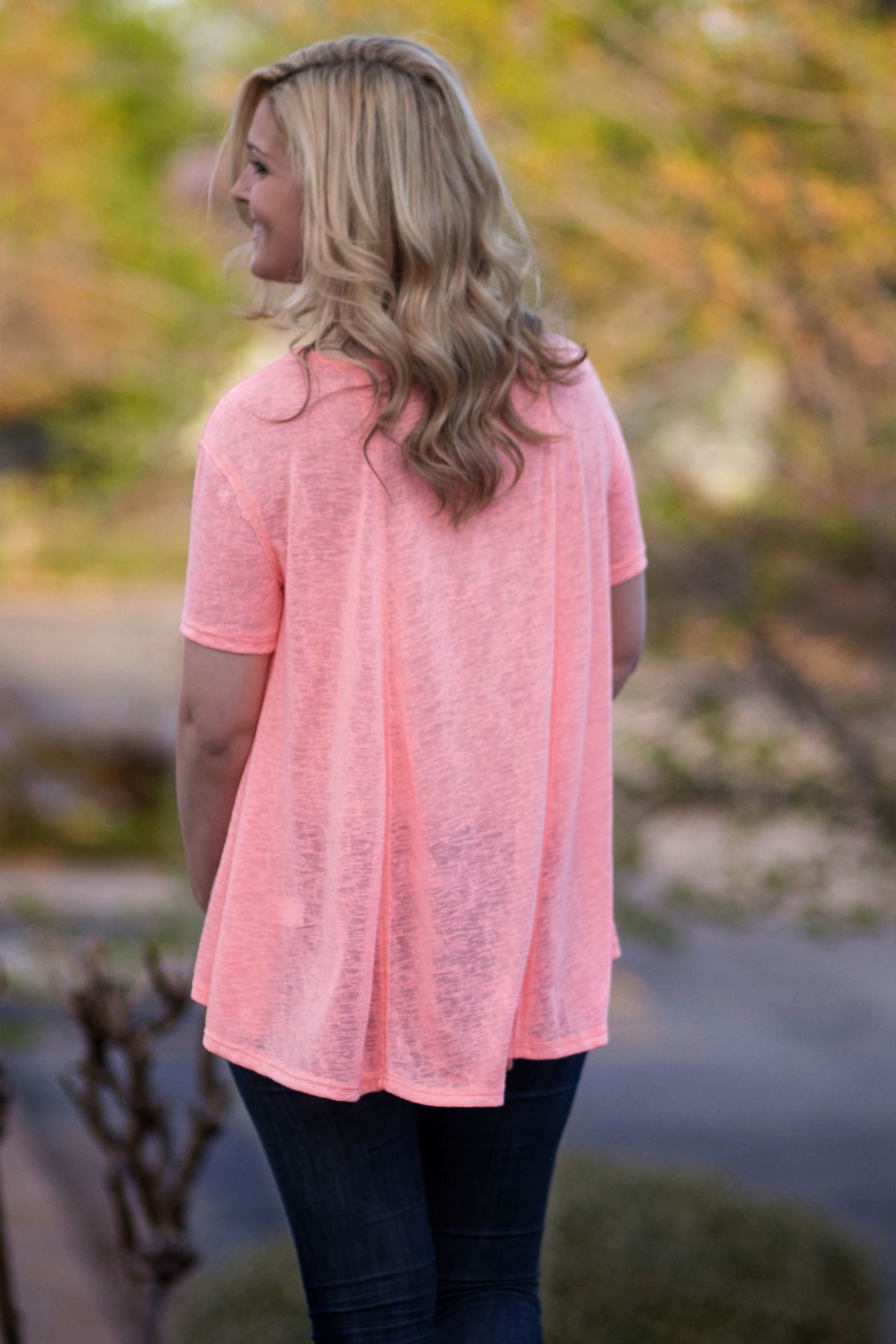 This high low tee is a comfy poly-spandex mix material. This top is a very flowy fit and most people have gone a size down for comfort. This model is 5'3", size 3, wearing size small.