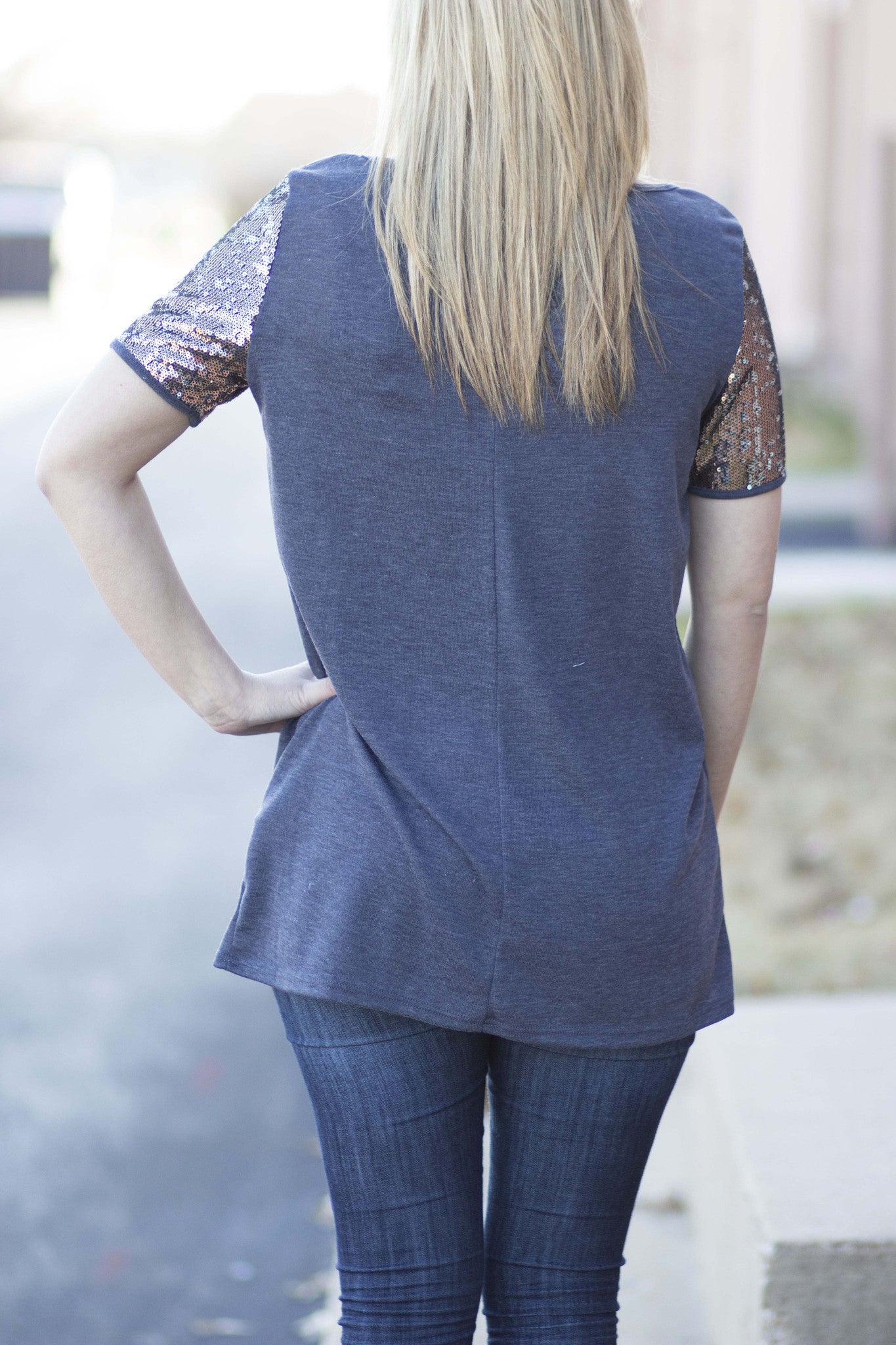 This shoulder sparkle top is just what you need for going out during the holiday season! It's a great party top that is not just cute, it's comfy! This fabric is a soft lightweight sweater material and the sleeves are lined so that the sequins aren't scratching you while you're trying to have fun.