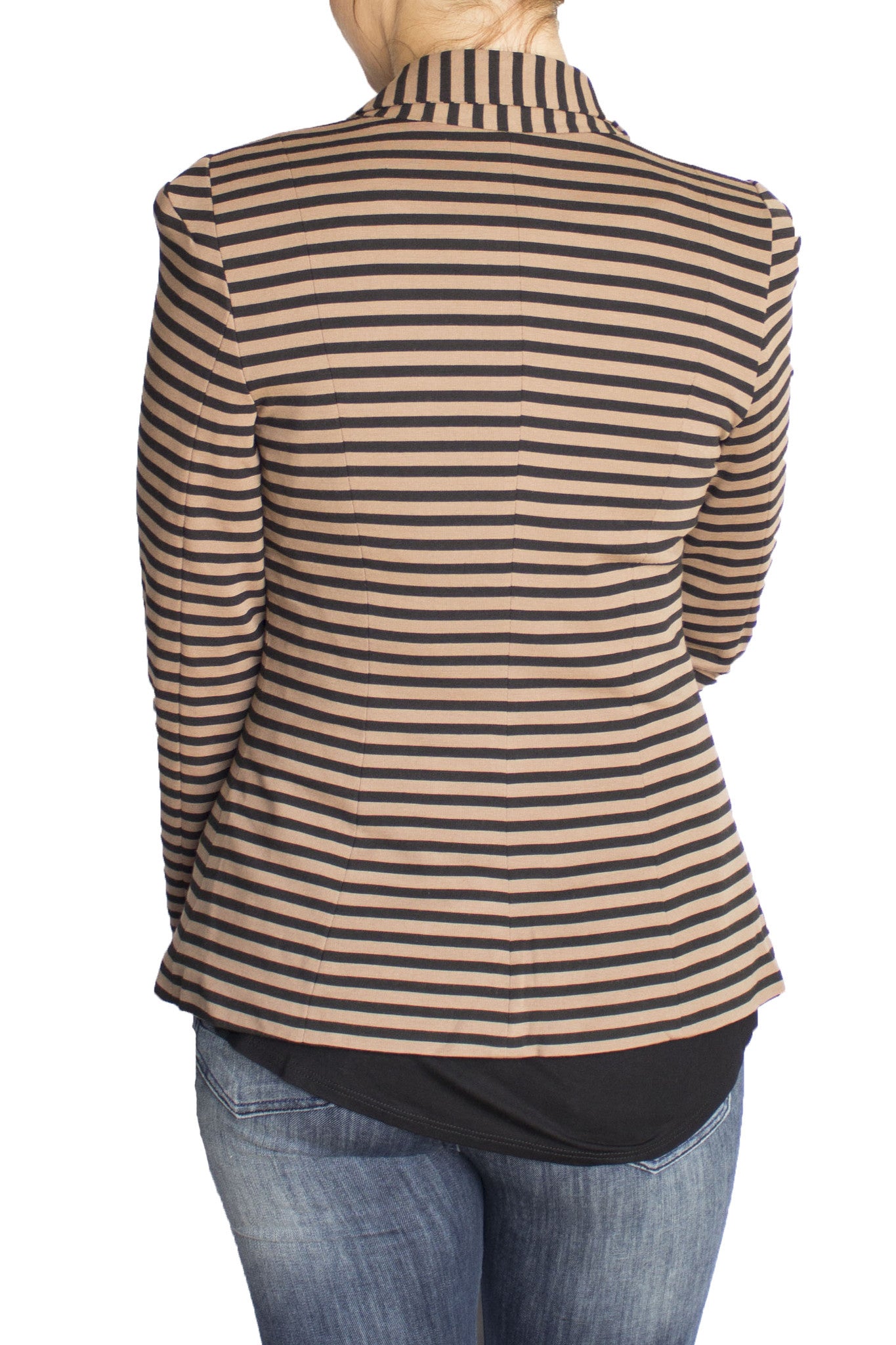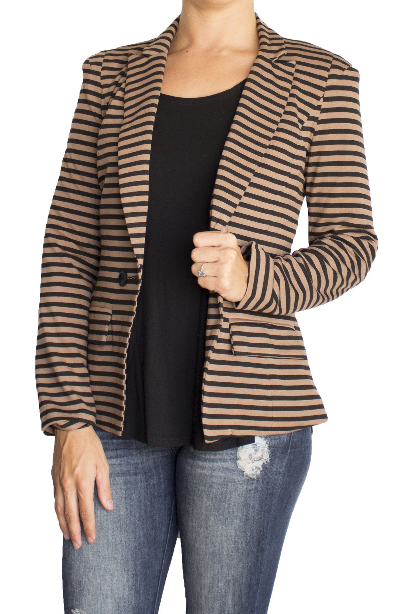 This striped blazer with a button in the front is great for a casual night out or a day in the office. You can dress it up or dress it down. It fits true to size and it has a nice silky-feel liner.
