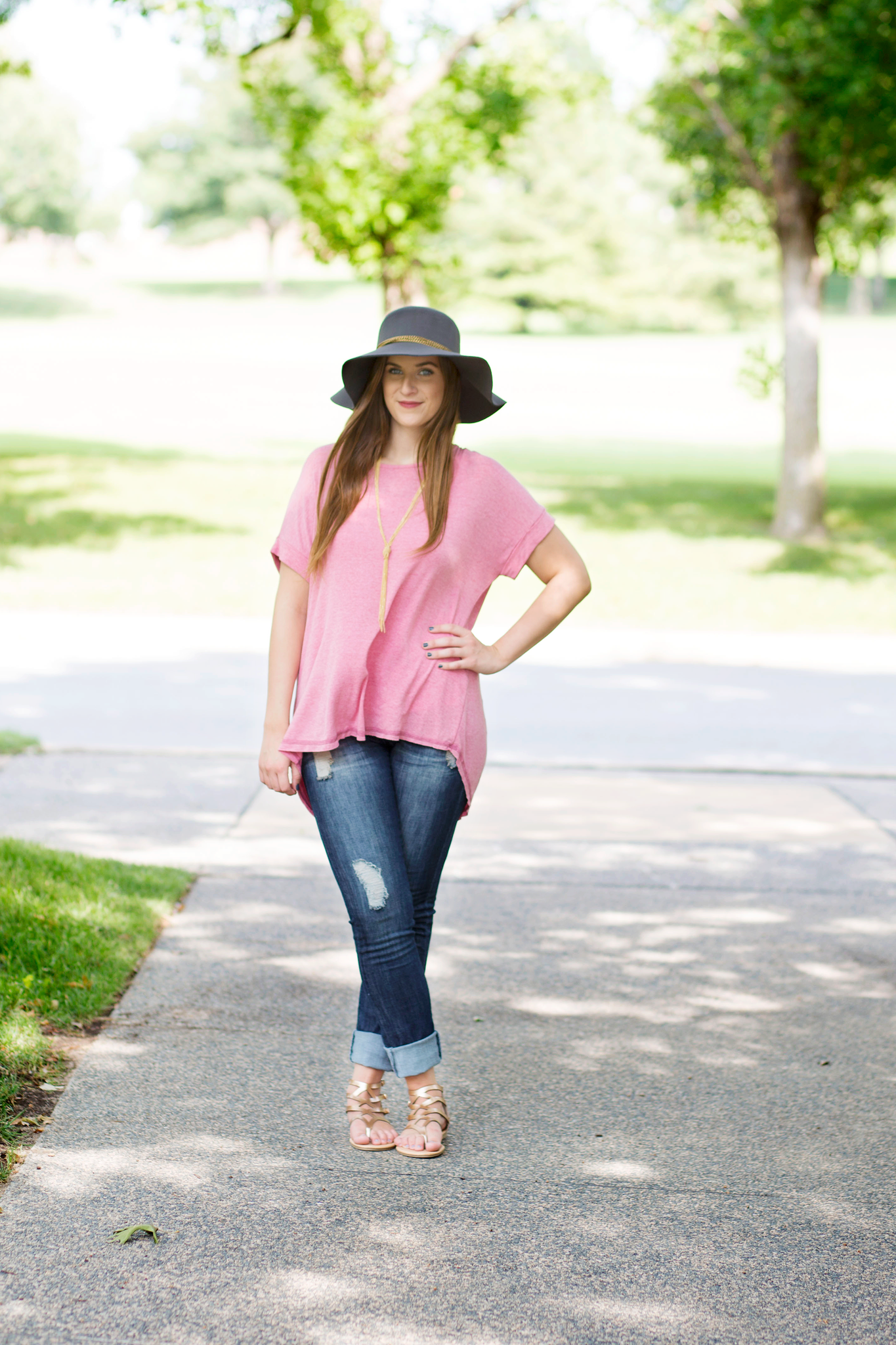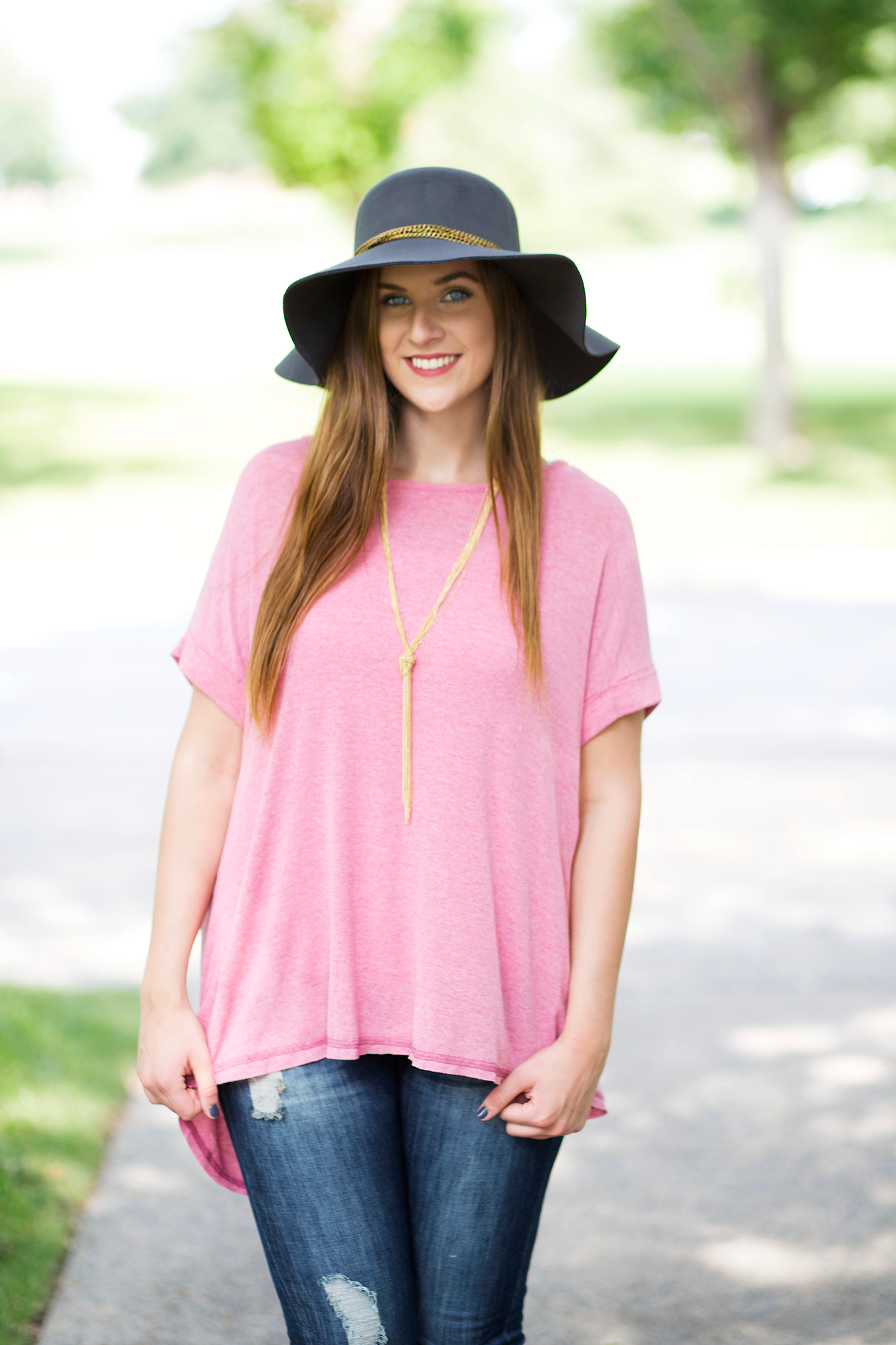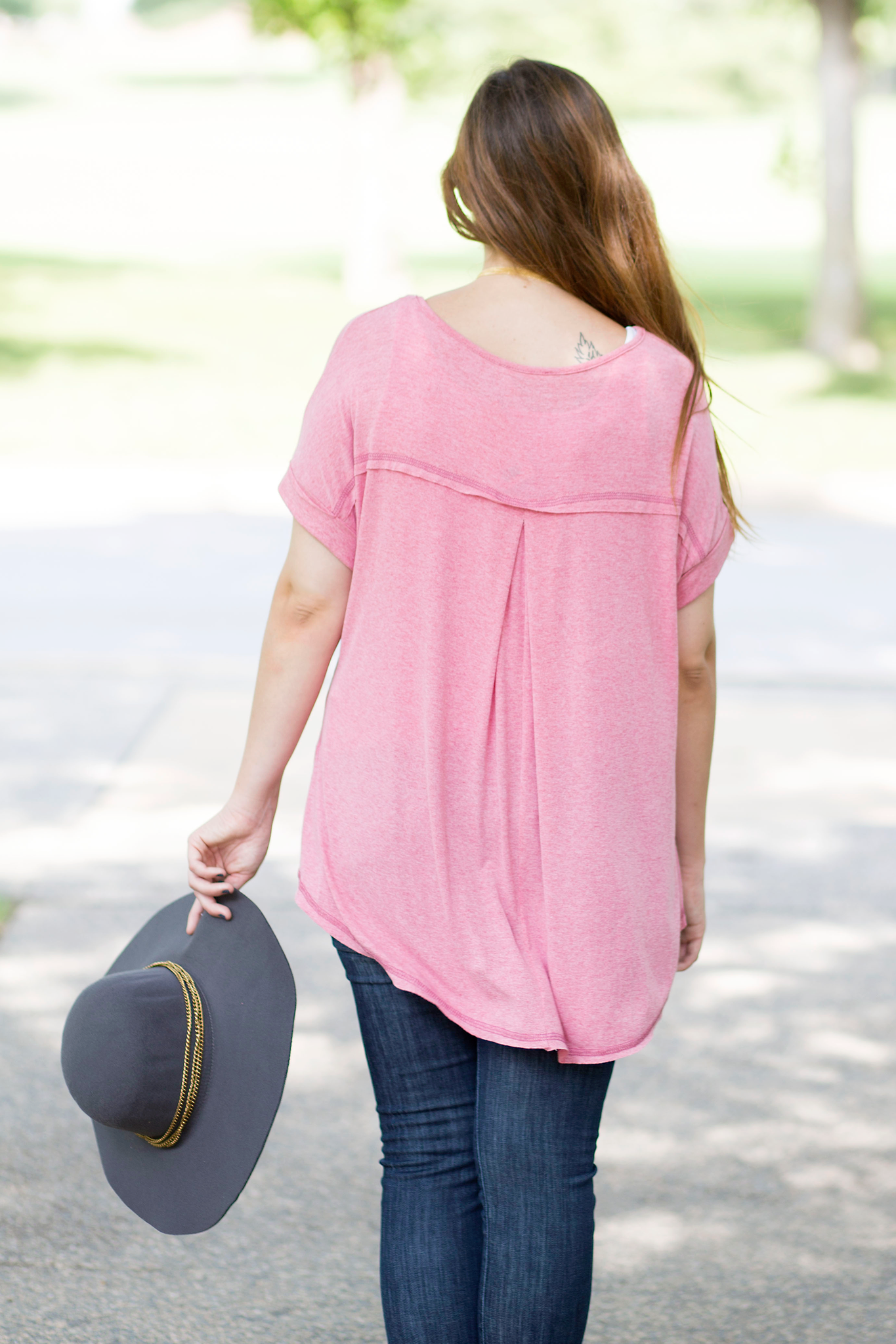 This basic tee is everything -- comfy, flattering, goes with many different looks! We love it! It's a must-have for fall. Get this basic tee in multiple colors. This top is a flowy fit. The model is 5'6" and wearing size small.